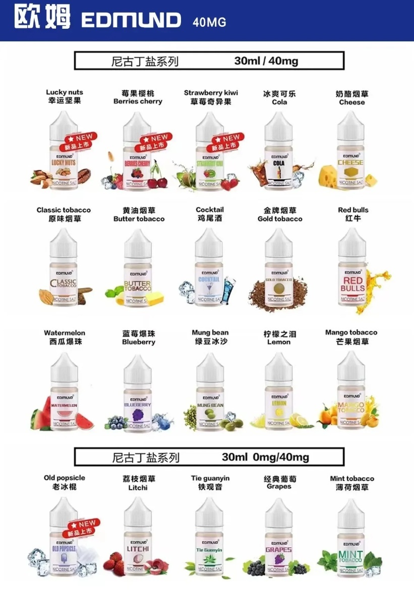 採用先進的技術和嚴格的品質控制,每一滴煙油都保證符合最高標準,確保您享受到的是優質、安全的煙霧體驗。EDMOUND 歐姆電子煙煙油,是您追求品質和享受的不二之選。