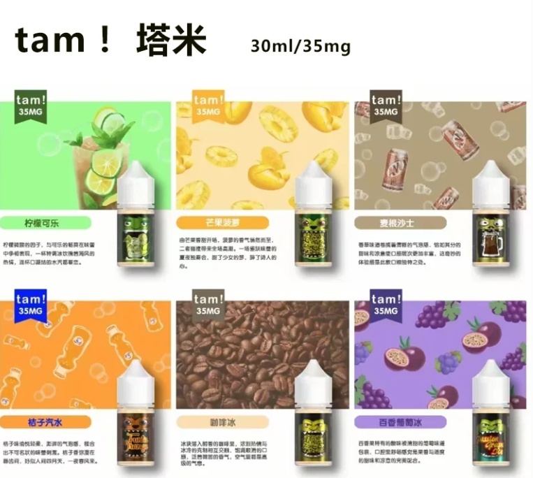 TAMI塔米電子煙油|馬來西亞進口35mg丁鹽煙油|臺灣熱銷替煙首選TAMI塔米是馬來西亞原裝進口的高品質電子煙油品牌,主打35mg黃金尼古丁濃度的丁鹽煙油系列,濃度適中、擊喉感順滑,既能滿足老菸民需求,又適合作為戒菸過渡產品。明星產品「大嘴怪系列」30ml裝以豐富口味(菸草/水果/冰爽系)和持久留香著稱,透過ISO認證生產流程,安全不膩喉。現推出「買五送一」優惠組合,價效比遠超同級煙油,臺灣實體店與電商平臺持續熱銷中。